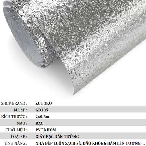 Giấy bạc dán bếp cách nhiệt 2x0.6m chống dầu mỡ GD105🍀🍀🍀 Chào mừng quý khách đến với ZUTOKO 🍀🍀🍀