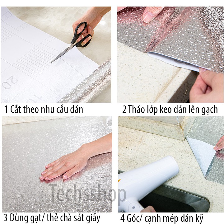 Techsshop giới thiệu một cuộn giấy bạc dán tường trang trí dán phòng bếp, bàn tủ kệ rất sang trọng và hiện đại, Với nhôm bạc khổ giấy 3mx60cm cắt dán dễ dàng, chống nước, chống ẩm thuận tiện vệ sinh lau chùi1 Thông tin sản phẩm