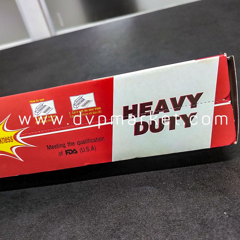 Thành phần của nó là 100% từ nhôm lá nguyên chất, chịu được nhiệt độ cao, an toàn sử dụng. Sản phẩm có đặc tính giữ nhiệt tốt, khi bọc thực phẩm vẫn giữ nguyên hương vị thực phẩm khi chế biến. Nhôm lá mỏng có màu bạc rất thích hợp dùng để nướng trong lò nướng, bếp than, bếp nướng,…và giữ nóng được thực phẩm rất tốt. Màng nhôm bọc thực phẩm rất nhẹ, mỏng, có thể dễ dàng tạo hình, bọc, gói, phủ lên trên hoặc lót phía dưới khi nấu nướng như: nướng thịt, cá và bảo quản thức ăn. Bạn có thể phủ lên trên khay/khuôn nướng, giúp giữ hơi nước bên trong khay thức ăn, không bị bay hơi hay mất mùi. Sản phẩm có kích thước 18inch x 17ft. Đồng thời, trên hộp có răng cưa giúp bạn dễ dàng cắt ra khi lấy vừa đủ để bọc, gói.