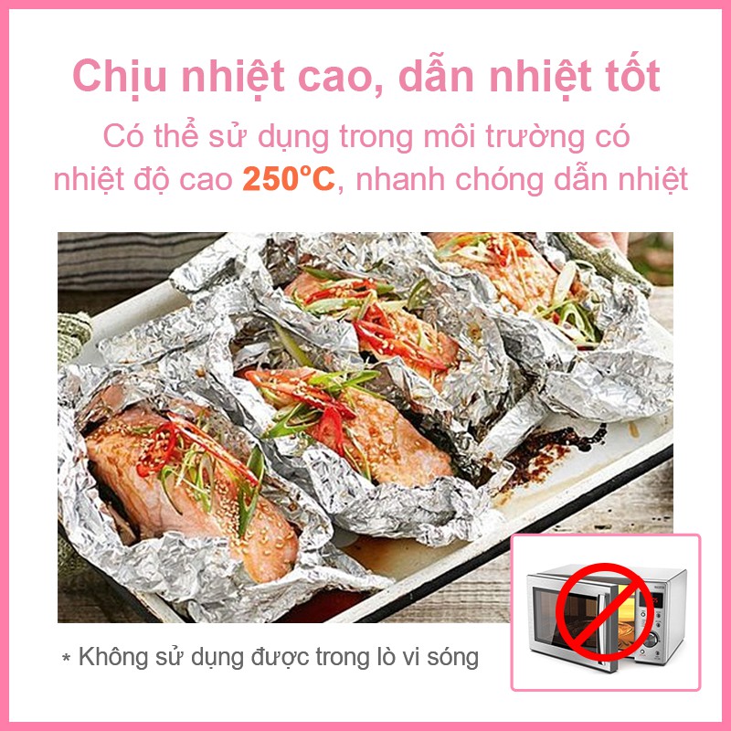 - Có thể sử dụng trong môi trường có nhiệt độ cao 250°C, nhanh chóng dẫn nhiệt, giảm ngắn thời gian hâm nóng thực phẩm