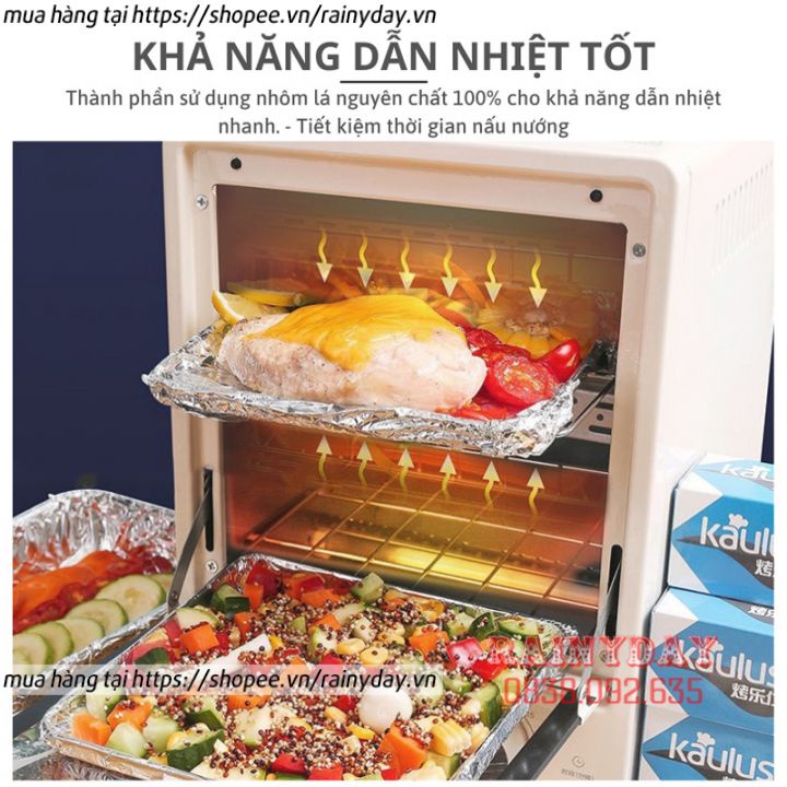 ✅ Chất liệu nhôm lá mỏng với đặc tính giữ nhiệt, chịu được nhiệt độ cao trên bếp than, bếp nướng điện, phủ lên trên khay,khuôn nướng