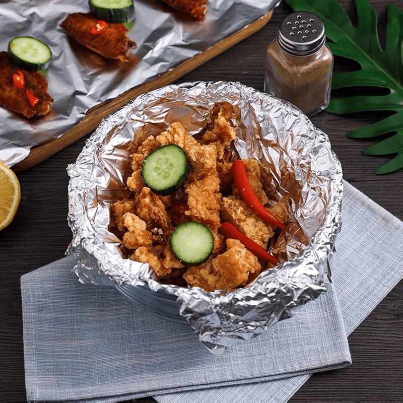 Giấy bạc nướng thịt cuộn 5m, giấy nướng thực phẩm lót nồi chiên không dầu là sản phẩm được làm từ chất liệu lá nhôm cao cấp, có khả năng hấp thu nhiệt tốt và bền bỉ theo thời gian. Giúp cho khách hàng dễ dàng bọc các loại thực phẩm và nướng thịt, cá một cách nhanh chóng, tiện lợi. Đồng thời cơ chế giữ nhiệt, giữ hơi nước tối ưu của giấy bạc lót nồi còn giúp cho món ăn trở nên ngon miệng, trọn vị hơn.