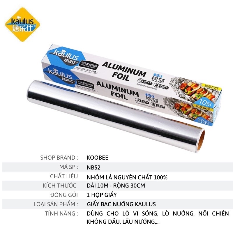 Giấy bạc nướng thực phẩm bọc nhôm 10m cho nồi chiên không dầu bánh nướng thức ăn MUNTECH GBN02