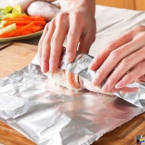 ✔ Giấy bạc được phủ lên trên khay/khuôn nướng, giúp giữ hơi nước bên trong khay thức ăn, không bị bay hơi hay mất mùi.