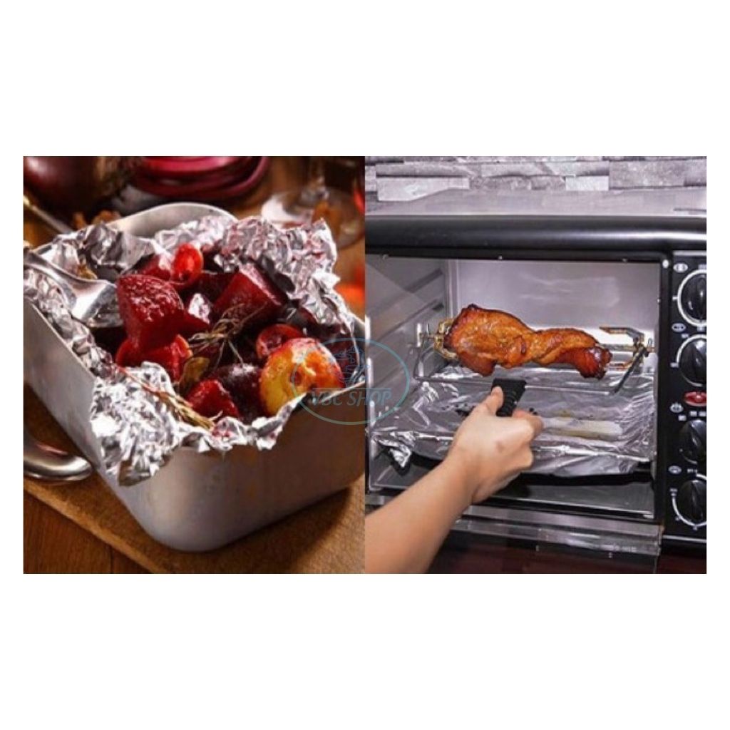 ✔ MÔ TẢ SẢN PHẨM :- Giấy bạc nướng thực phẩm được làm từ một loại nhôm cán mỏng để dùng gói hoặc phủ lên trên khay hoặc bếp nướng, Giúp giữ được nhiệt lâu và không sợ bị bay hơi hoặc mất đi mùi hương vị của thực phẩm.