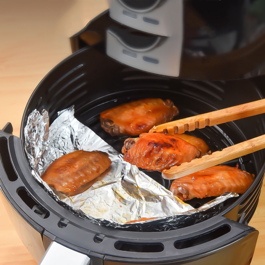 Giấy bạc nướng được sử dụng làm giấy bạc nồi chiên không dầu. Sử dụng giấy bạc lót nồi chiên không dầu lót dưới đáy nồi chiên không dầu giúp món ăn chín đều, hương vị tốt hơn, đặc biệt, vệ sinh nồi sau nướng đơn giản hơn.