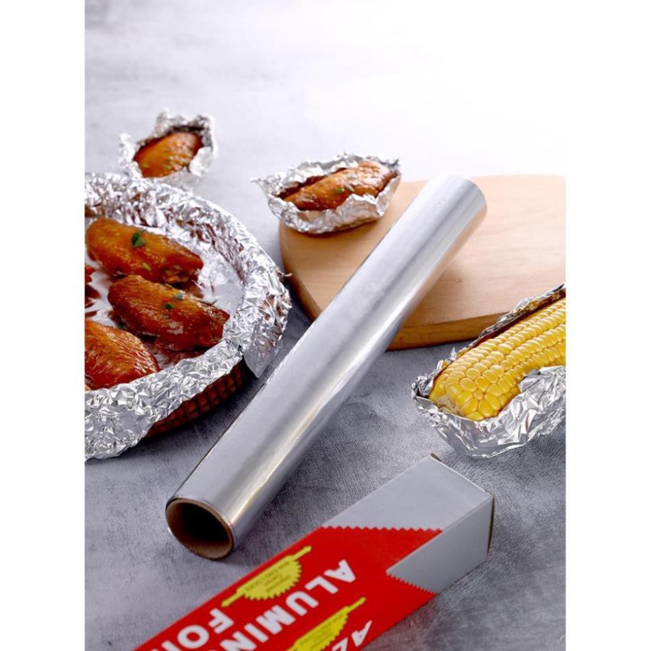 - Giấy bạc làm từ một loại nhôm cán mỏng dùng để gói, phủ lên trên khay/khuôn nướng, giúp giữ hơi nước bên trong khay thức ăn, không bị bay hơi hay mất mùi.