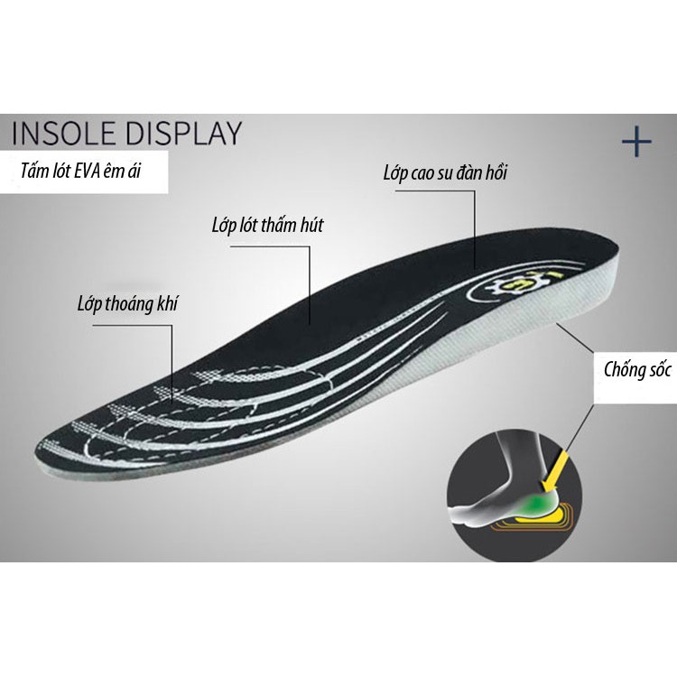 Ngoài ra tấm lót chân nylon cũng giúp đôi chân người dùng luôn cảm thấy êm ái cùng những lỗ thoát khí nhỏ giúp chân luôn “thở” được, không bị hầm chân dù mang giày trong thời gian dài..
