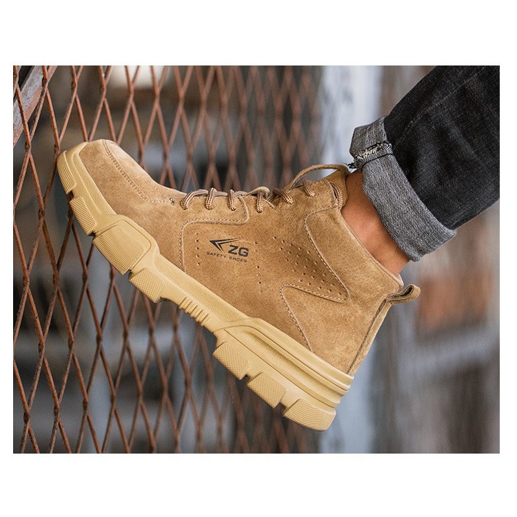 Giày Bảo Hộ Lao Động Cao Cổ Da Bò Lộn Chống Đinh Chống Va Đập Chống Nước - HOT TREND 2020