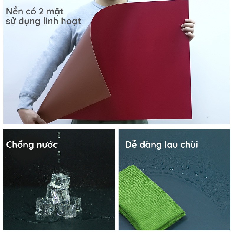 - Sản phẩm bìa giấy cứng 2 màu 2 mặt phù hợp cho nhiều loại concept chụp ảnh cần phối nhiều màu sắc: Chụp mỹ phẩm, phụ kiện, quần áo, chụp food,...