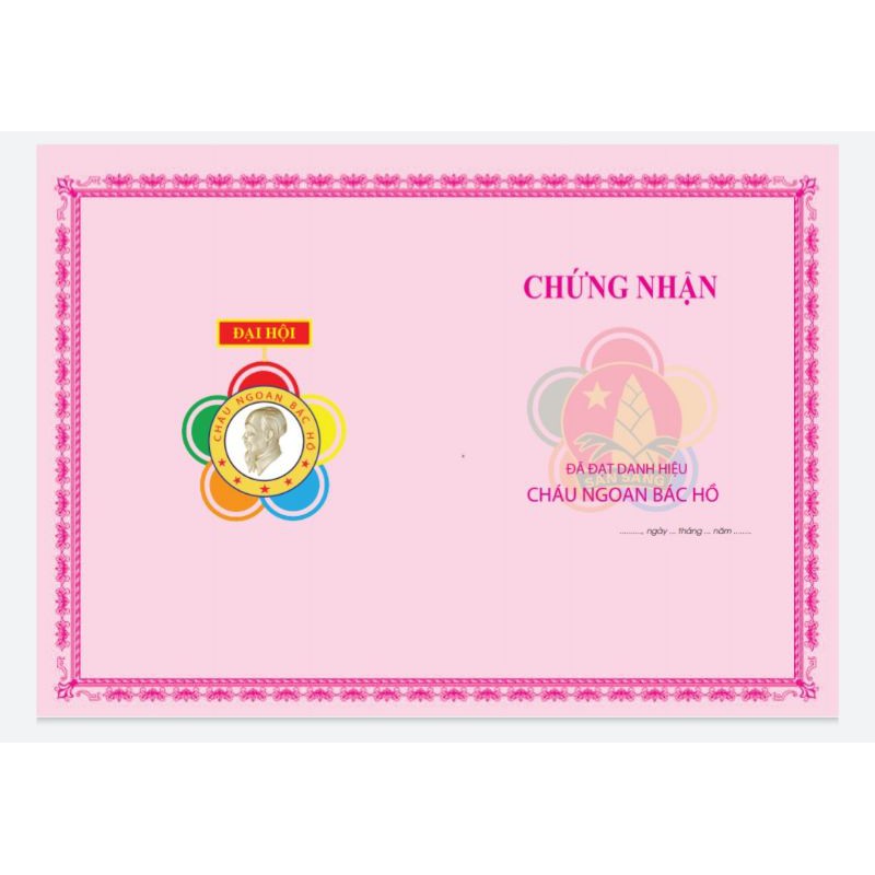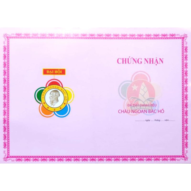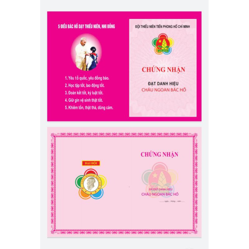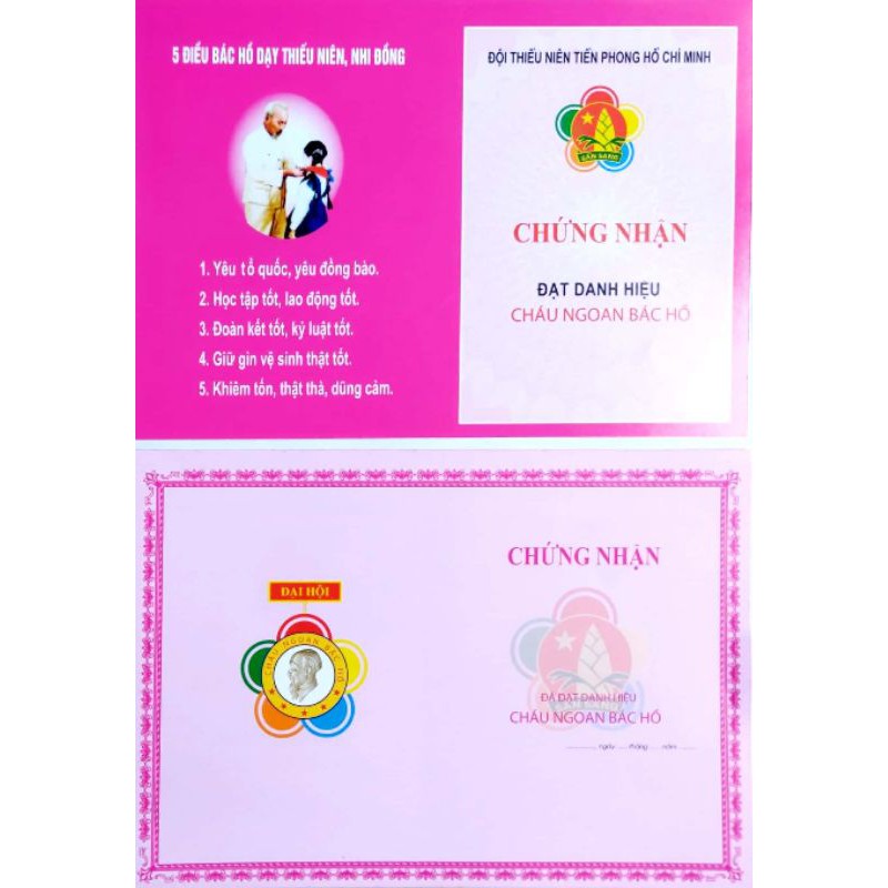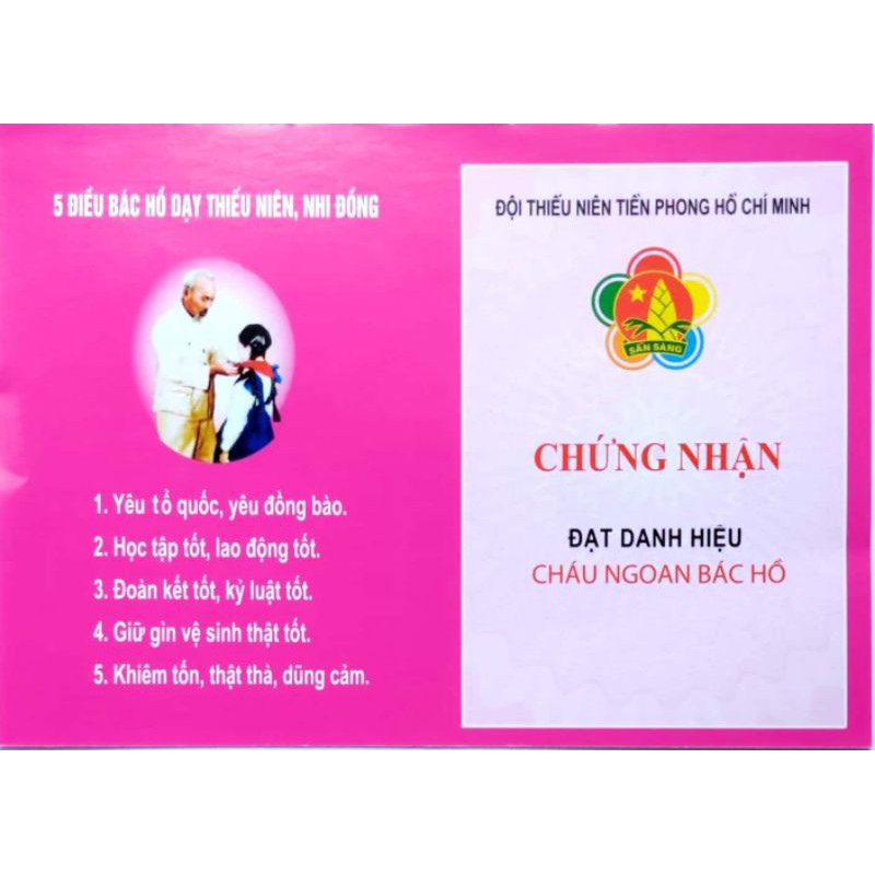 Giấy chứng nhận cháu ngoan Bác Hồ, giấy khen cháu ngoan Bác Hồ, mẫu mới nhất, in hai mặt, loại đẹp [ số lượng 100 tờ ]