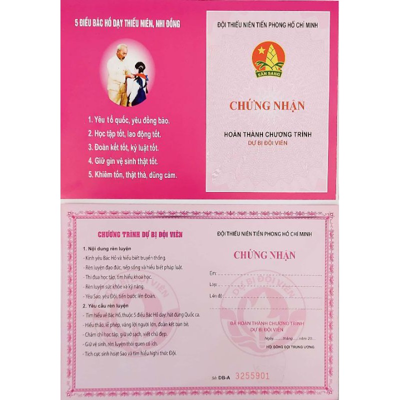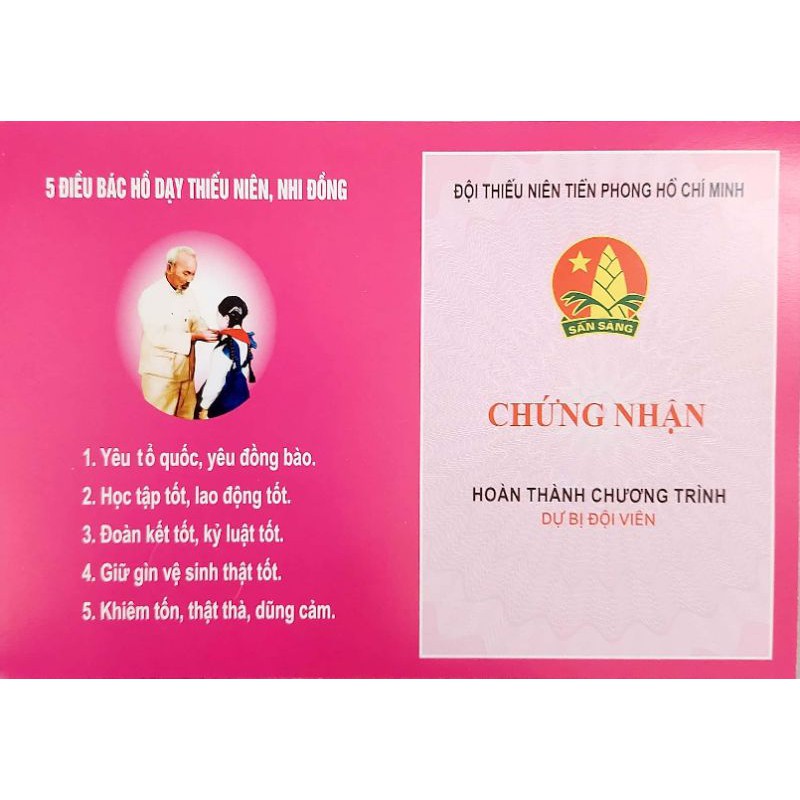 Giới thiệu Giấy Chứng Nhận Hoàn Thành Chương Trình Dự Bị Đội Viên (100 cái)
