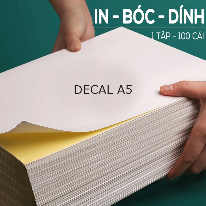 Văn Phòng Phẩm > Sổ & Giấy Các Loại > Giấy In || Giấy Decal A5 Dạng Tập 100 Tờ Sẵn Lớp Dán Dành Cho Máy In Canon In Đơn Vận ChuyểnCòn hàng