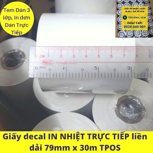 Giấy decal IN NHIỆT TRỰC TIẾP liền dải 79mm x 30m TPOS