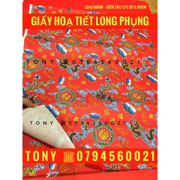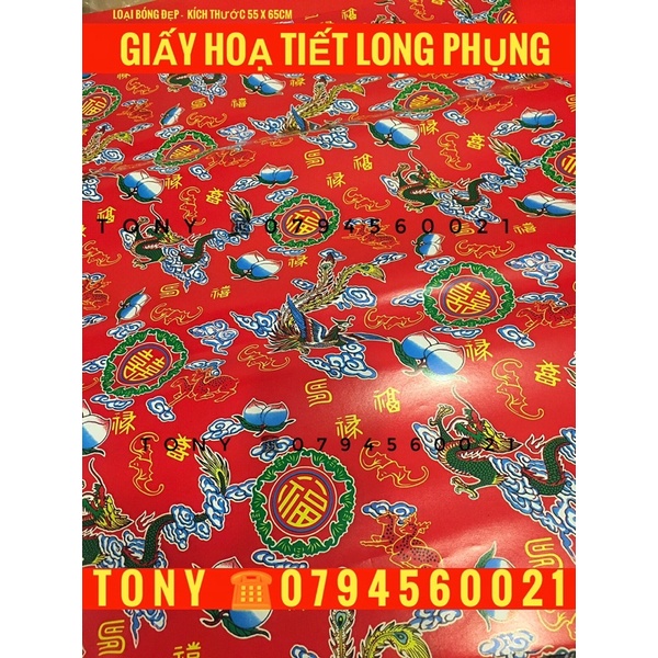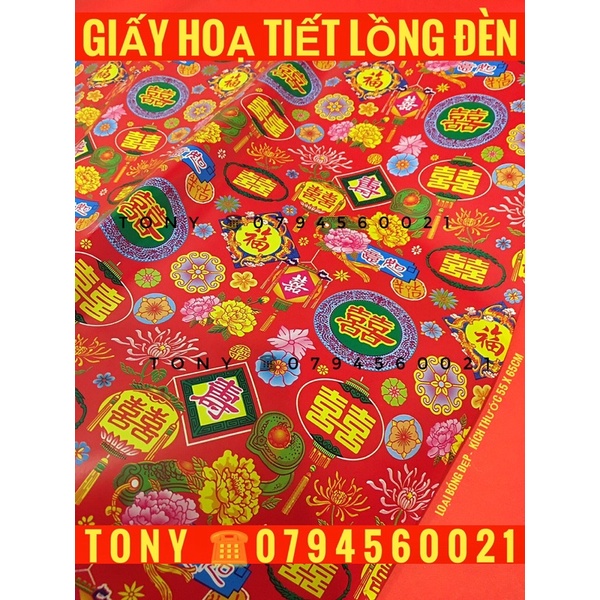 Kích thước: 55X65cm giấy hoa văn, giấy đỏ: 65x98cm