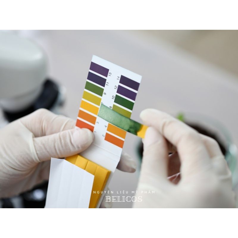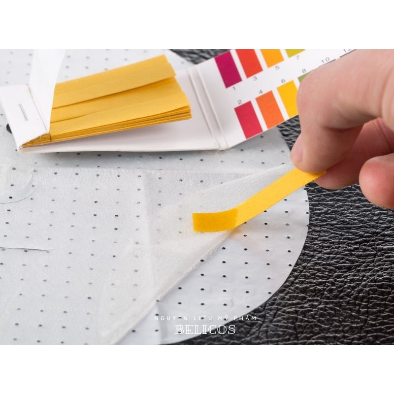 Để test mẫu mỹ phẩm tiện dụng, hãy sử dụng giấy đo pH của Belicos. Giấy đo có bảng màu đo dễ dàng so sánh và nhận biết độ pH sản phẩm. Giấy dễ dàng thấm ướt với dung dịch và chuyển đổi màu sắc nhanh chóng. – Belicos cung cấp dụng cụ thí nghiệm, dụng cụ làm mỹ phẩm đạt tiêu chuẩn.