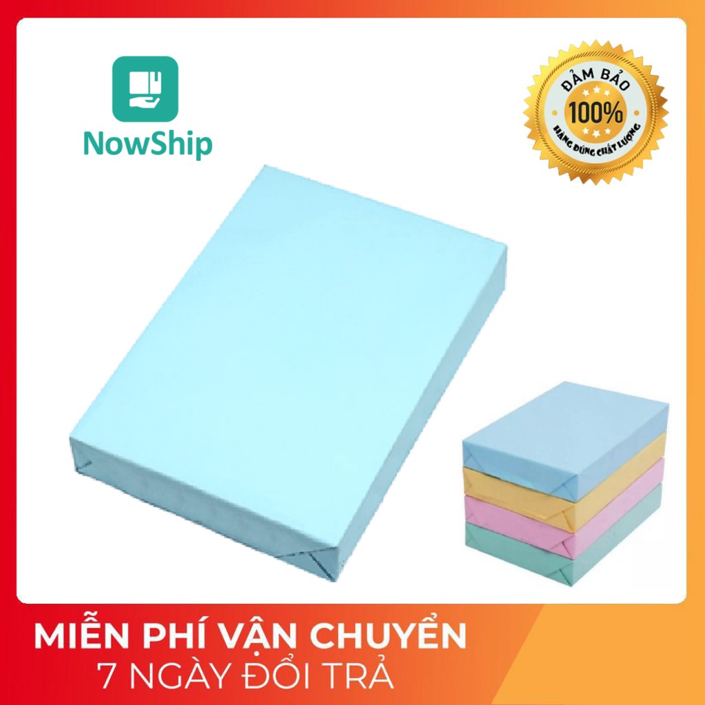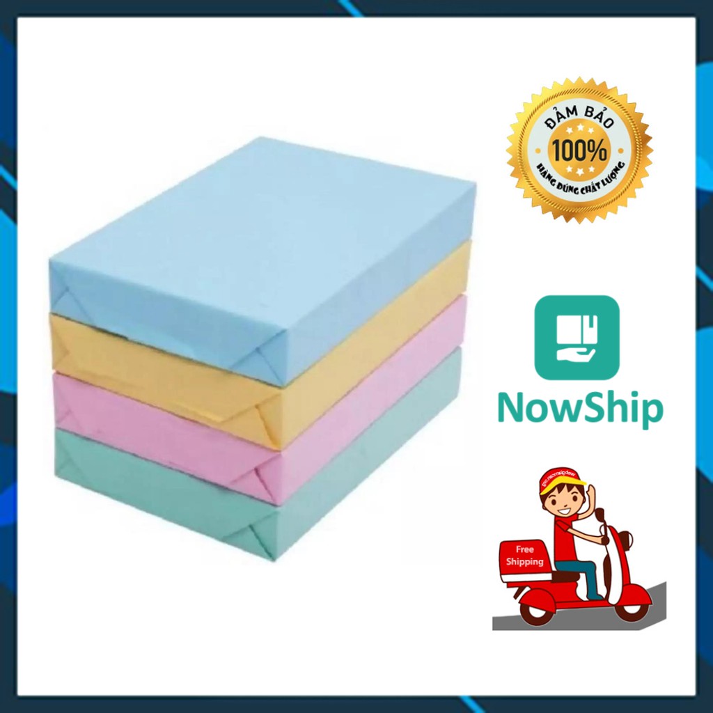 - Kích thước khổ A4, định lượng giấy 80gsm, giấy có các màu: xanh lá, xanh dương, hồng, vàng