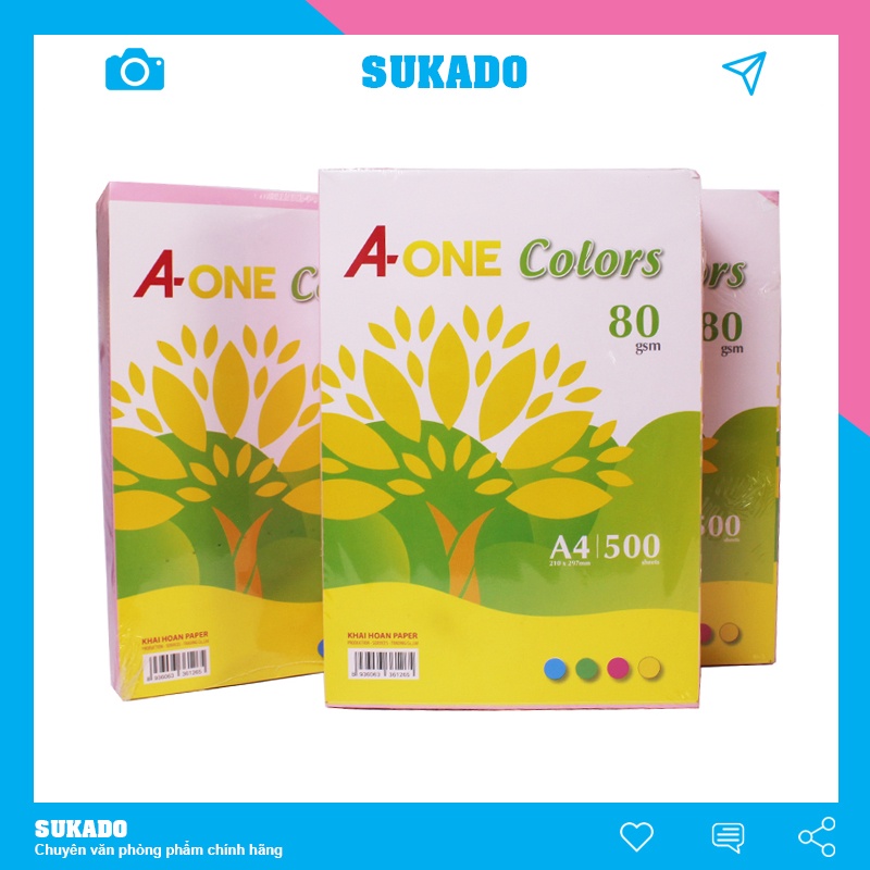 Văn Phòng Phẩm > Sổ & Giấy Các Loại > Giấy In || Giấy Ford màu A4 Paper One/TenPlus 80gsm 500 tờ (Xanh, vàng, x.lá, hồng) SUKADOCòn hàng