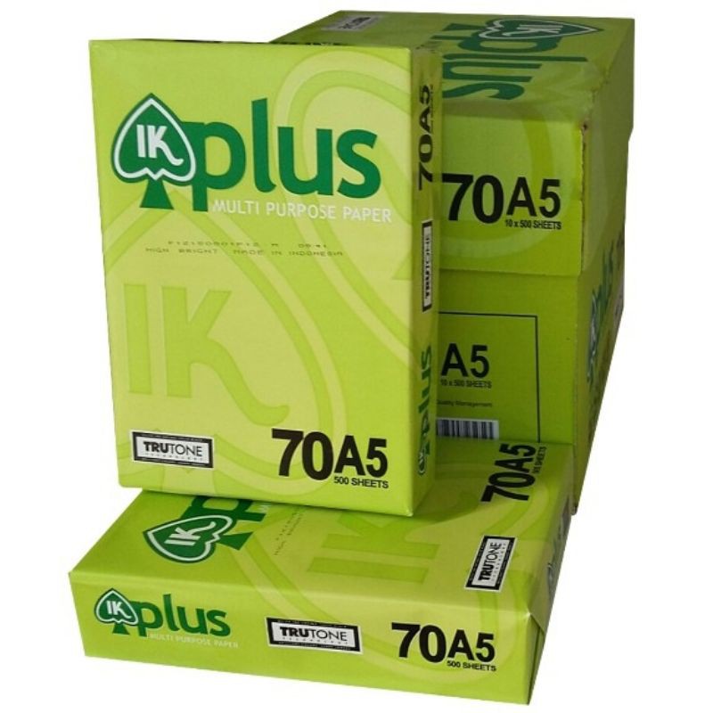 Giấy IK Plus định lượng 70 A5, là loại giấy trắng đẹp, độ sắc nét cao, in 2 mặt không bị kẹt giấy, cho phép in, photocopy ra những văn bản, hình ảnh đẹp.Khách hàng có thể hoàn toàn yên tâm về chất lượng và giá cả khi sử dụng.