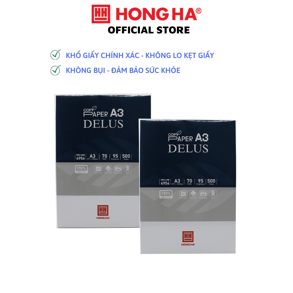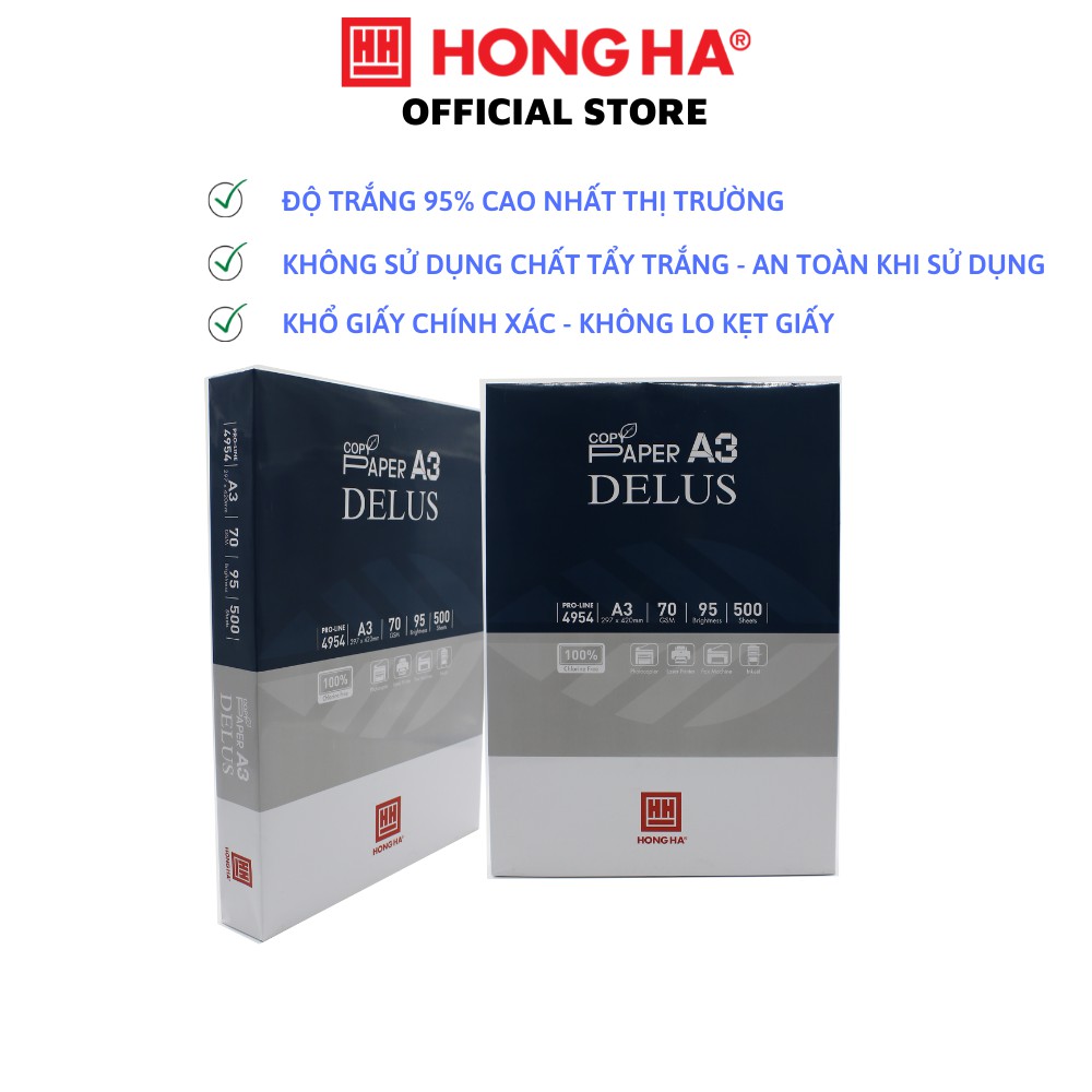 Giấy in A3 Delus Hồng Hà 70gsm 4954 là sản phẩm giấy xuất xứ từ Indonesia, được sản xuất với công nghệ tiên tiến, hiện đại, đóng gói bằng dây chuyền hoàn toàn tự động.ƯU ĐIỂM NỔI BẬT