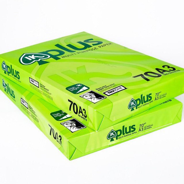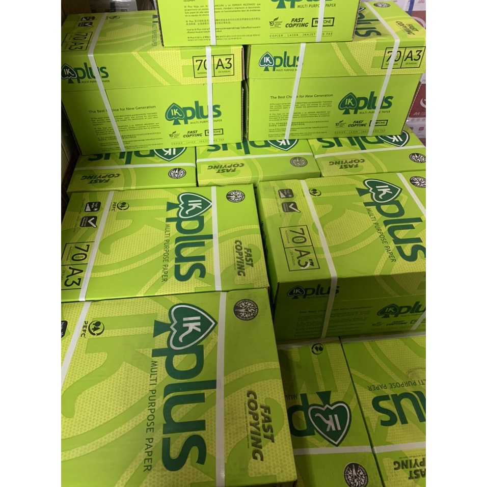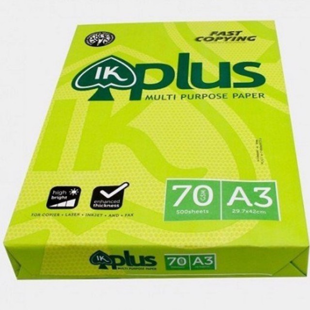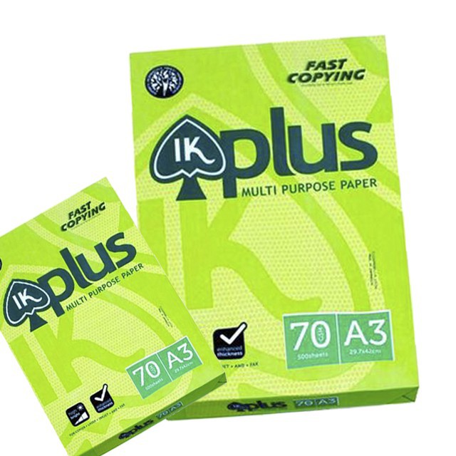 - Giấy In Plus A3: Là loại giấy đẹp, rất láng mịn, in không bị nhòe và nhăn, giấy có độ trắng cao. IK Plus được đóng gói kỹ, chất lượng luôn được đảm bảo. Được sản xuất tại Indonesia.