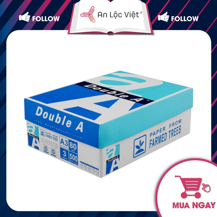 - Double A là nhãn hiệu giấy in photo cao cấp, chất lượng giấy rất tốt, có những ưu điểm về độ trắng sáng, độ sắc nét trong in ấn.vGiấy in A3 Double A 70gsm, 80gsm có kích thước khổ A3, giấy có độ dày phù hợp với các dòng máy in photo hiện đại.