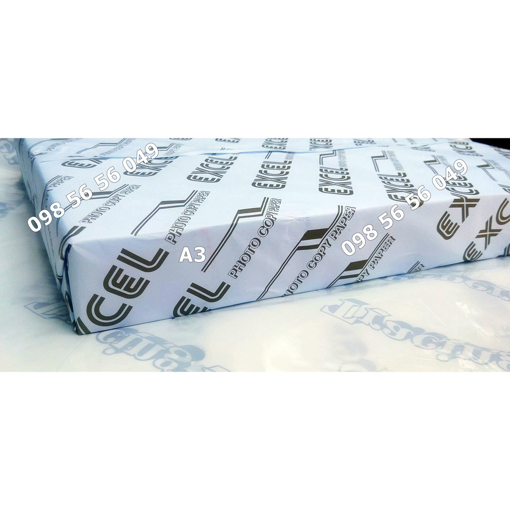 Giấy in phtocopy Excel A3 - 80gsmGiấy được sản xuất và nhập tại Indonesia, Được cắt và đóng gói kỹ đẹp. Giấy trắng đẹp, láng, mịn (không chấm đen, không mặt trăng màu tím).