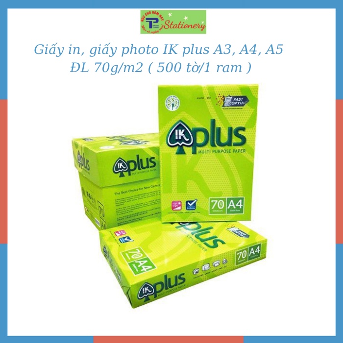 Văn Phòng Phẩm > Sổ & Giấy Các Loại > Giấy In || Giấy in A4/A5/A3 IK Plus định lượng 70gsm đóng gói 500 tờ/ Tập dùng để in tài liệu, hồ sơCòn hàng