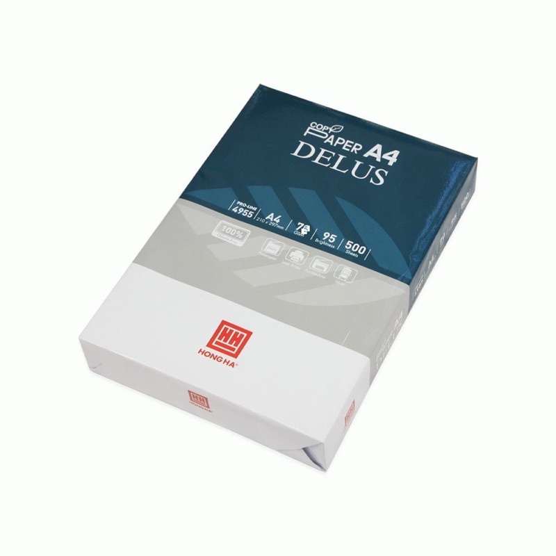 Giấy in A4 Hồng Hà Delus 75gms 4955 là sản phẩm giấy xuất xứ từ Indonesia, được sản xuất với công nghệ tiên tiến, hiện đại, đóng gói bằng dây chuyền hoàn toàn tự động.ƯU ĐIỂM NỔI BẬT