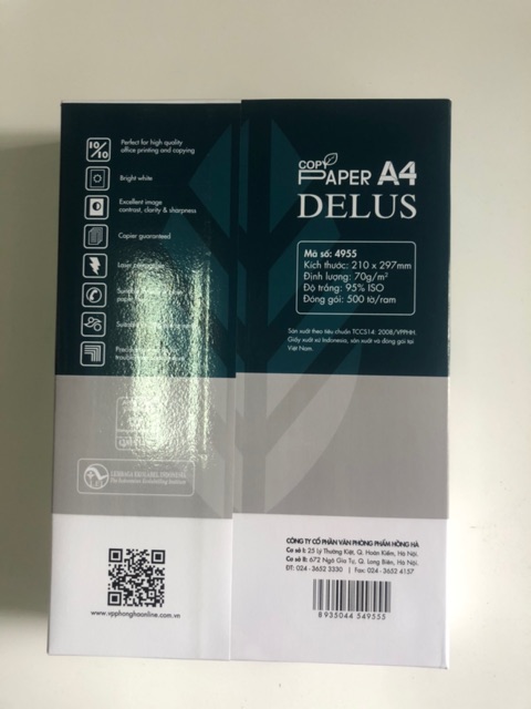 Giấy in A4 Delus Hồng Hà Định lượng 70+ giấy có độ trắng 95 ISO đảm bảo độ trắng in nổi bật, không bị kẹt giấy và không bị công giấy khi inGiá SHPING