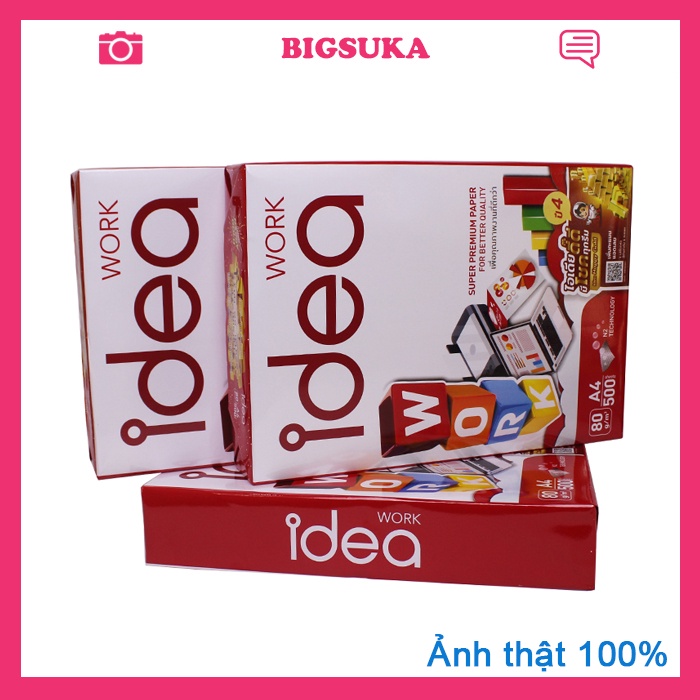 - Giấy a4 Idea là thương hiệu nổi tiếng tại Thái Lan, lựa chọn loại giấy này đảm bảo in ấn hiệu quả và chuyên nghiệp cho nhu cầu người dùng, có đặc tính bền bỉ, độ giấy dày, hạn chế tối đa tình trạng rách, kẹt giấy và tăng kéo dài tuổi thọ của máy.