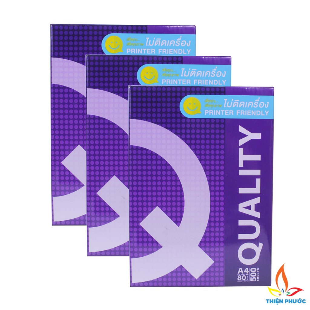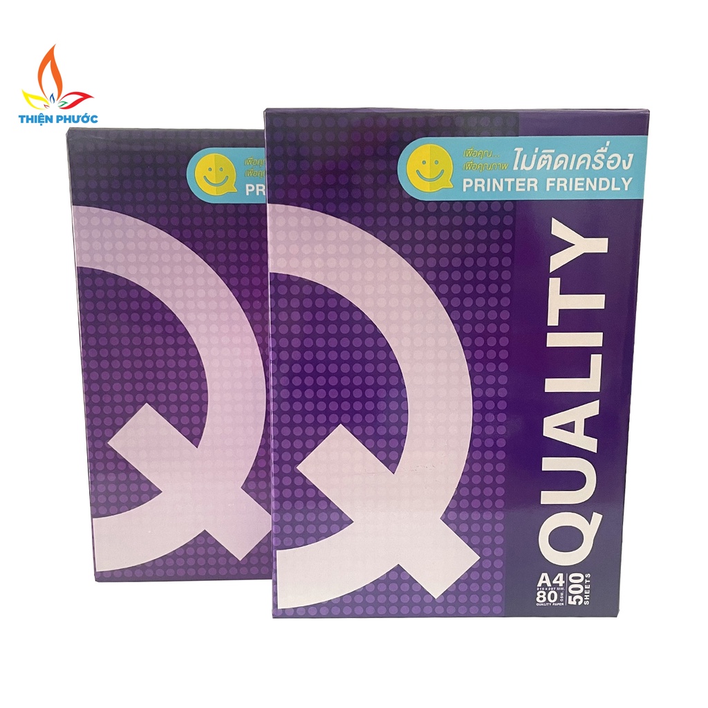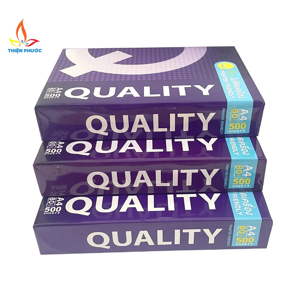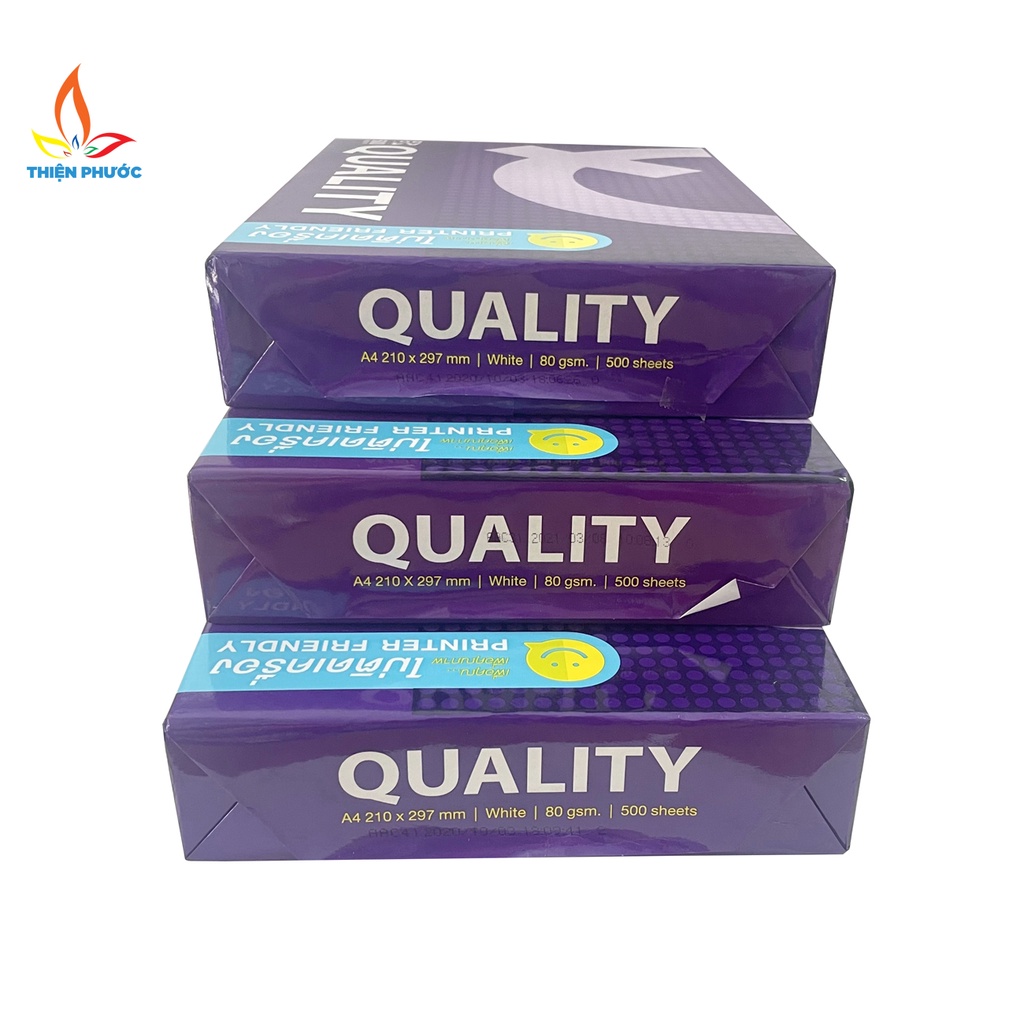 - Sản phẩm giấy in Quality 80Gsm thiết kế khổ giấy A4, thích hợp sử dụng làm giấy in, photo trong các văn phòng hoặc trong gia đình. Bạn cũng có thể sử dụng để viết, vẽ sơ đồ hoặc phác thảo các bản vẽ một cách đơn giản và nhanh chóng.