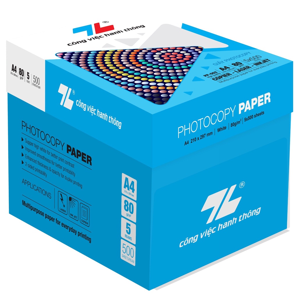 Giấy in văn phòng chất lượng cao, bề mặt nhẵn tuyệt vời, mau khô mực, thích hợp cho các loại máy in phun, máy in laser, máy fax laser, máy photocopy…