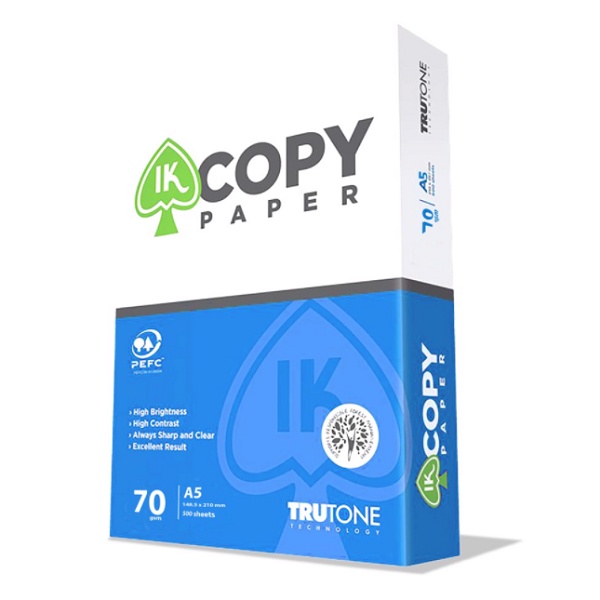 Giấy in A5 IK COPY sử dụng chất liệu giấy có bề dày tốt, bề mặt láng mịn, bắt mực êm, độ cản quang của giấy cao hơn do đó giảm hiện tượng nhìn thấu trang và cho phép sử dụng cả hai mặt giấy một cách toàn diện nhấtTHÔNG TIN CHI TIẾT SẢN PHẨM: