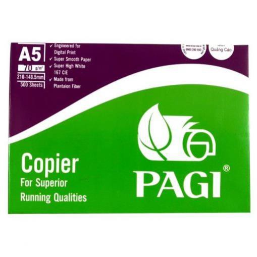 Giấy In A5 Pagi Định Lượng 70mgs ,Độ Trắng 90,Đóng Gói 500 tờ/ram Có Màng Co Chống Ẩm Phù Hợp Với Các Loại Máy In