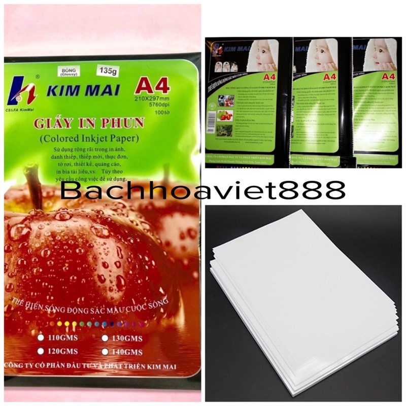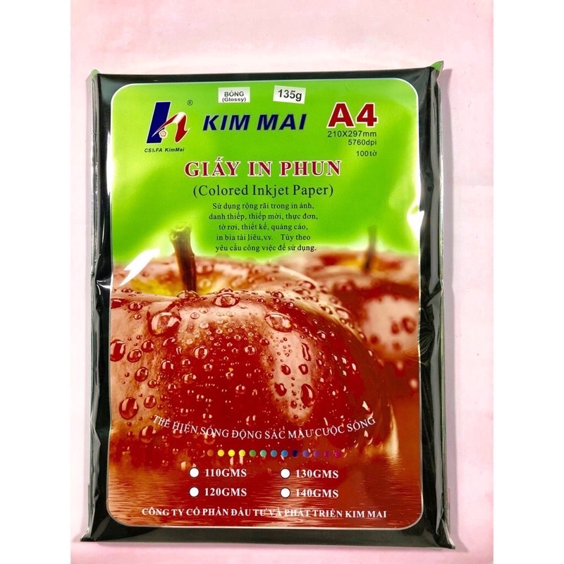 Văn Phòng Phẩm > Sổ & Giấy Các Loại > Giấy In || Giấy in ảnh 1 mặt bóng Kim Mai định lượng 135/115 gsm 100 tờ/ gr, giấy in ảnh couche chống nướcCòn hàng