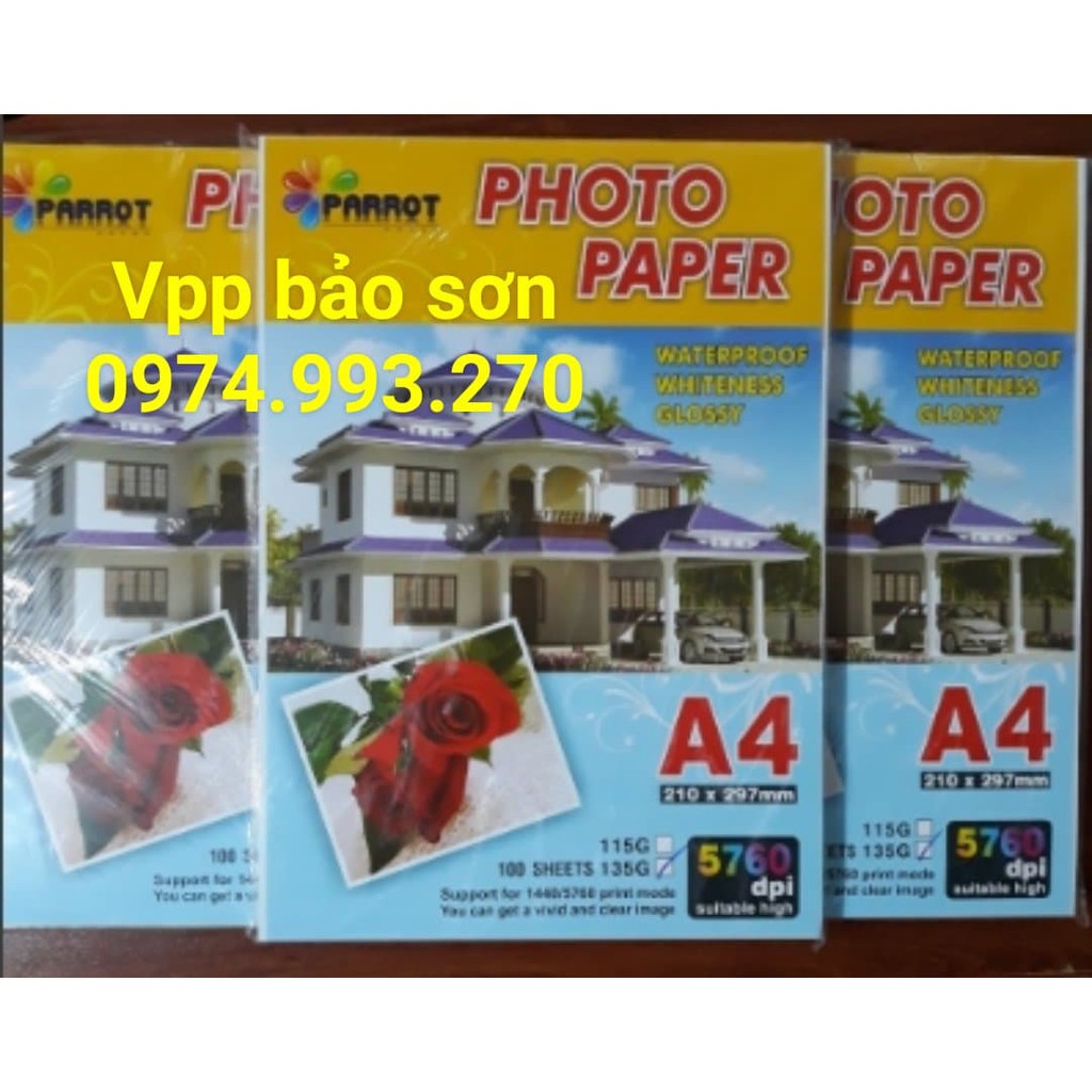 Giấy in ảnh 1 mặt bóng khổ A4 định lượng 115gsm - 100 tờGiấy in ảnh 1 mặt bóng khổ A4 định lượng 135gsm - 100 tờ