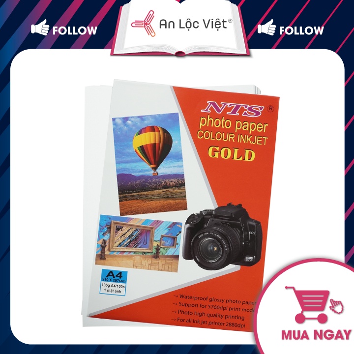 - Với giấy in ảnh NTS 1 mặt ĐL 135 A4 sẽ là sự lựa chọn hoàn hảo cho việc in ấn với chi phí tiết kiệm nhất nhưng hình ảnh của bạn vẫn giữ được chất lượng cao bằng máy in phun. Được An Lộc Việt group phân phối với giá tốt.