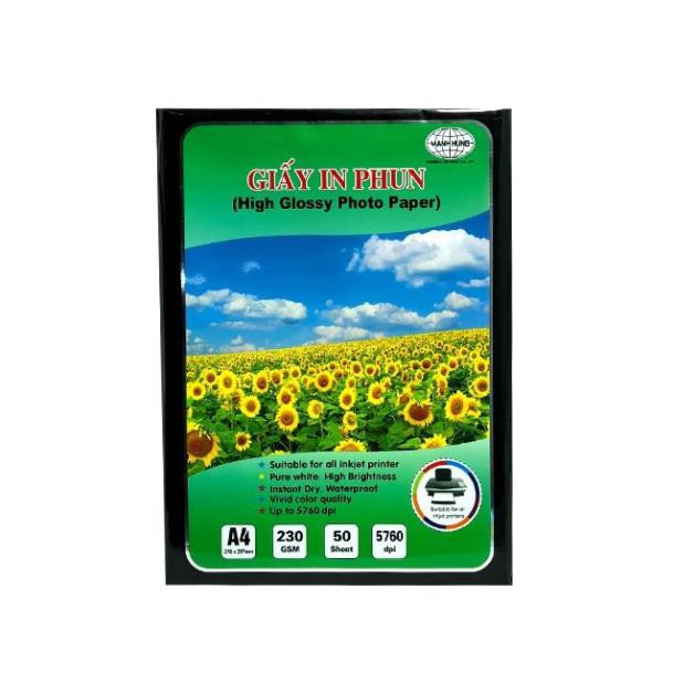 Giấy In Ảnh Mạnh Hưng ĐL 230 gsm, Bóng 1 Mặt (50 tờ)