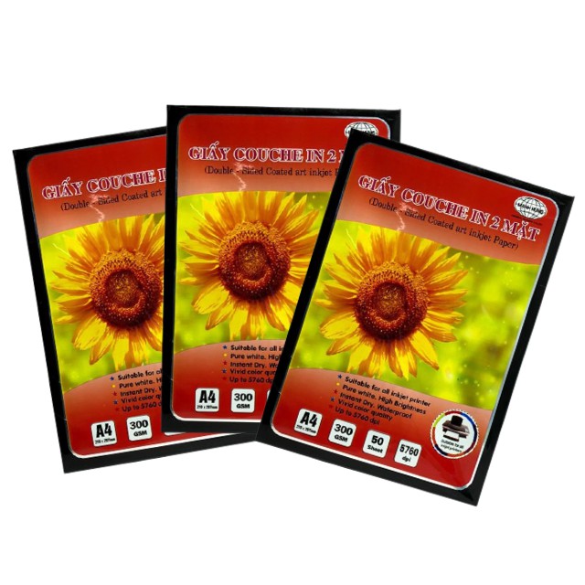 Giấy In Ảnh Couche Bóng 2 MặtMạnh Hưng, Giấy in mầu khổ A4 Định Lượng 300gms Xấp 50 Tờ