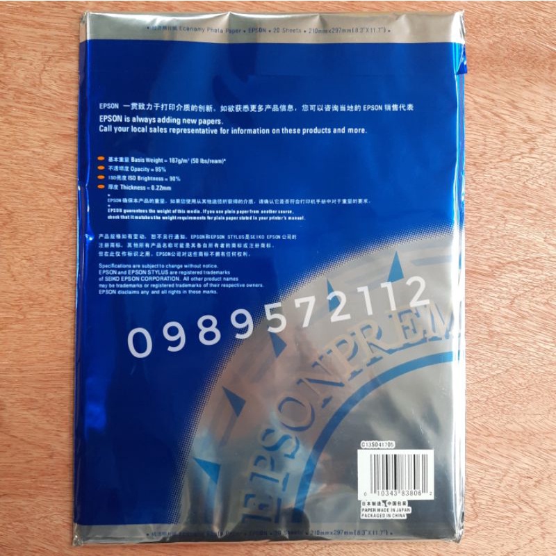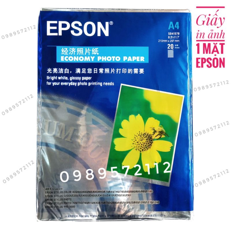 Giấy in ảnh 1 mặt epson:_Đóng gói:20 tờ/1ram