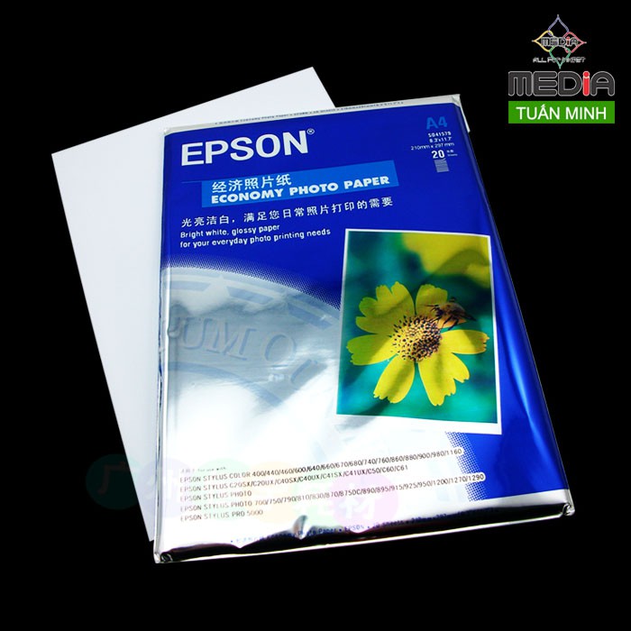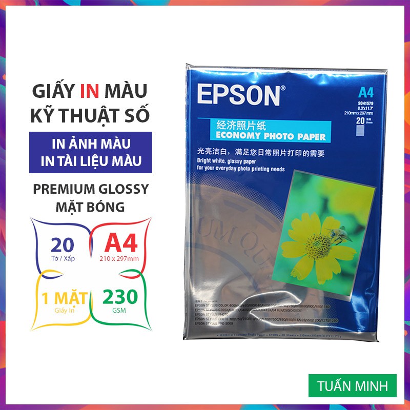 Văn Phòng Phẩm > Sổ & Giấy Các Loại > Giấy In || Giấy In Ảnh EPSON Giấy In Màu EPSON, Khổ A4, 1 Mặt Bóng, Định Lượng 230gsm, Xấp 20 Tờ, Giấy In Màu Giá RẻCòn hàng