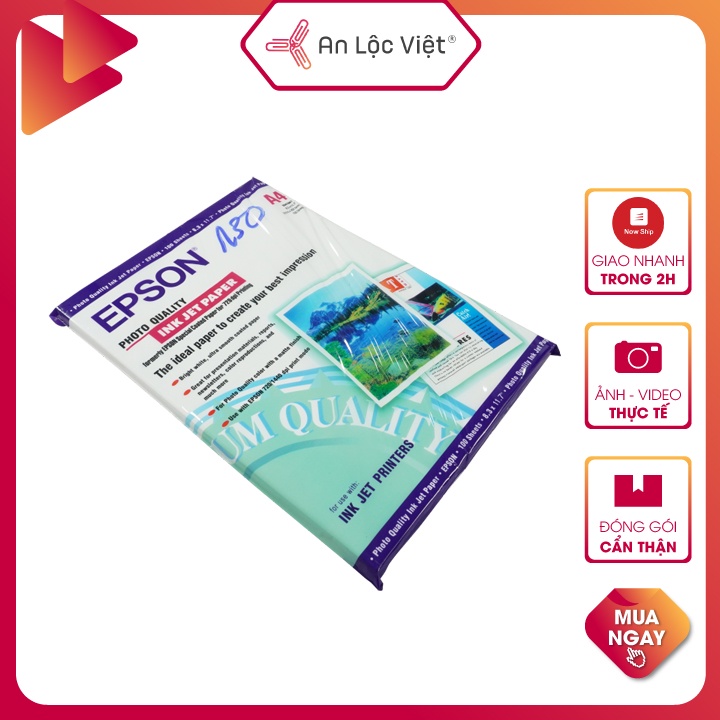 - Kích thước khổ A4 (210 x 297 mm), 1 mặt bóng, định lượng 130 gsm mang thương hiệu Epson được sử dụng phổ biến trên thị trường.