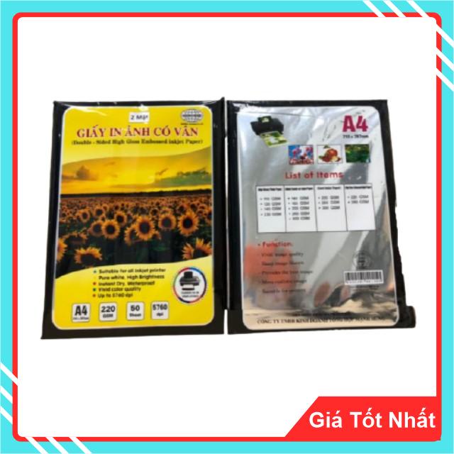 Giấy In Ảnh , In Mầu Mạnh Hưng 2 Mặt Khổ A4 Có Vân Định Lượng 220gsm Xấp 50 Tờ