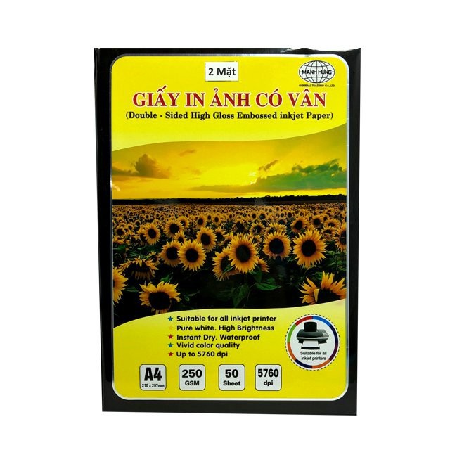 - Giấy in ảnh có vân Mạnh Hưng nổi bật với các đường gân nổi rõ trên bề mặt giấy, tuy nhiên vẫn có khả năng hấp thụ các hạt mực trên bề mặt các đường gân một cách hoàn hảo, tái hiện trung thực màu sắc theo thiết kế.