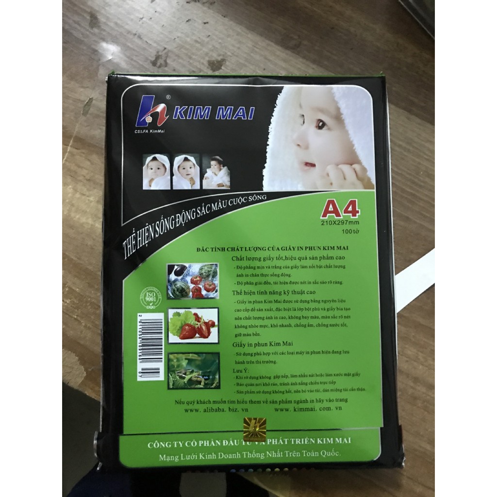 Đặc điểm:- Giấy in ảnh Kim Mai ĐL115 được sử dụng bằng nguyên liệu giấy cao cấp để sản xuất, đặc biệt là lớp bột phủ và giấy bìa tạo nên chất lượng ảnh in cao, không bay màu, màu sắc rõ nét không nhòe mực, khô nhanh, chống nước tốt, giữ màu bền.