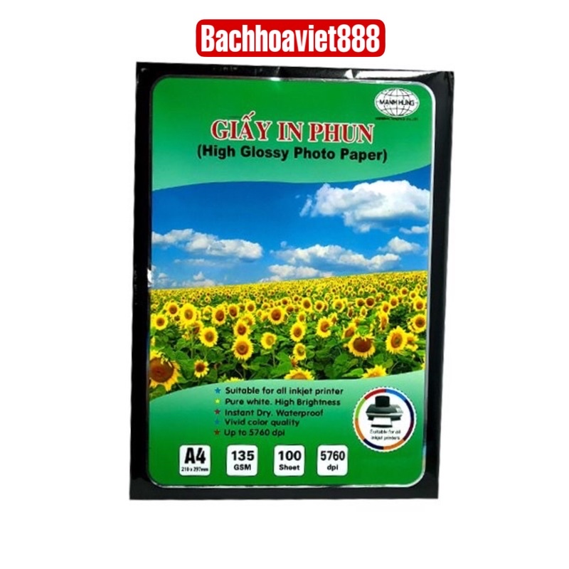 Văn Phòng Phẩm > Sổ & Giấy Các Loại > Giấy In || Giấy in ảnh Mạnh Hưng khổ a4 định lượng 135gsm 100 tờ/gr, giấy in chất lượng cao bóng 1 mặtCòn hàng