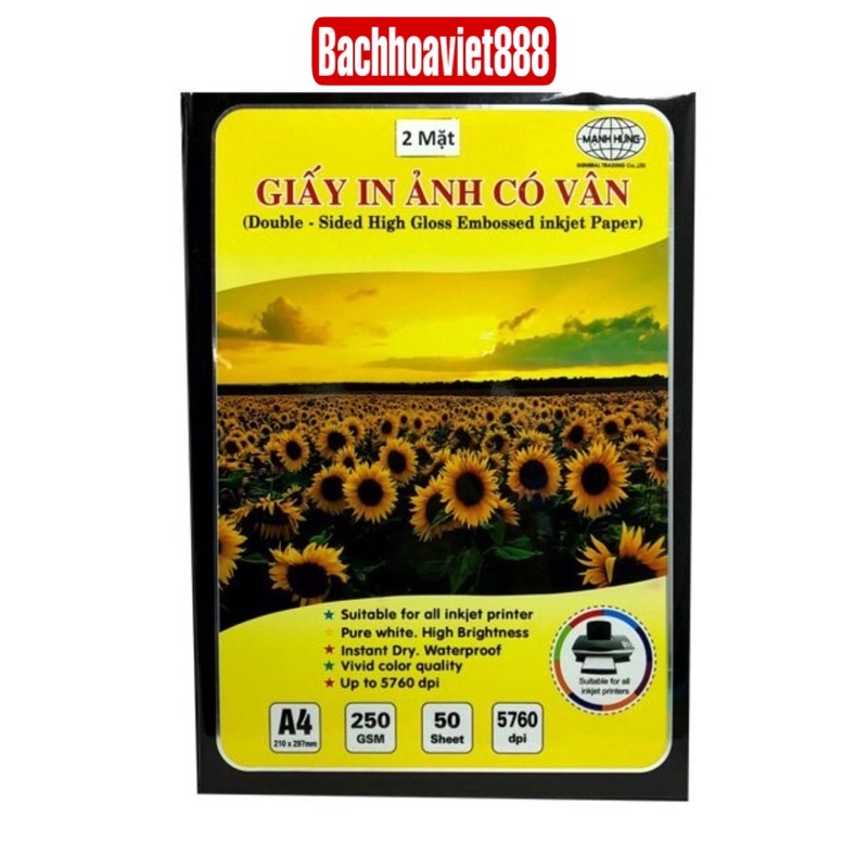 Văn Phòng Phẩm > Sổ & Giấy Các Loại > Giấy In || Giấy in ảnh Mạnh Hưng khổ A4 định lượng 250 gsm 50 tờ/g 2 mặt vân, giấy in couche in phunCòn hàng