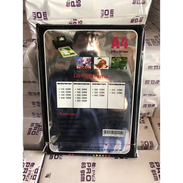 Giới thiệu Giấy in ảnh Mạnh Hưng khổ A4 định lượng 260gsm 50 tờ/g, giấy in couche bóng 2 mặt