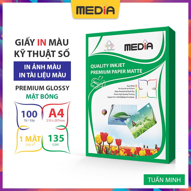 Giới thiệu Giấy In Ảnh Media 1 Mặt Bóng A4 135gsm 100 tờ